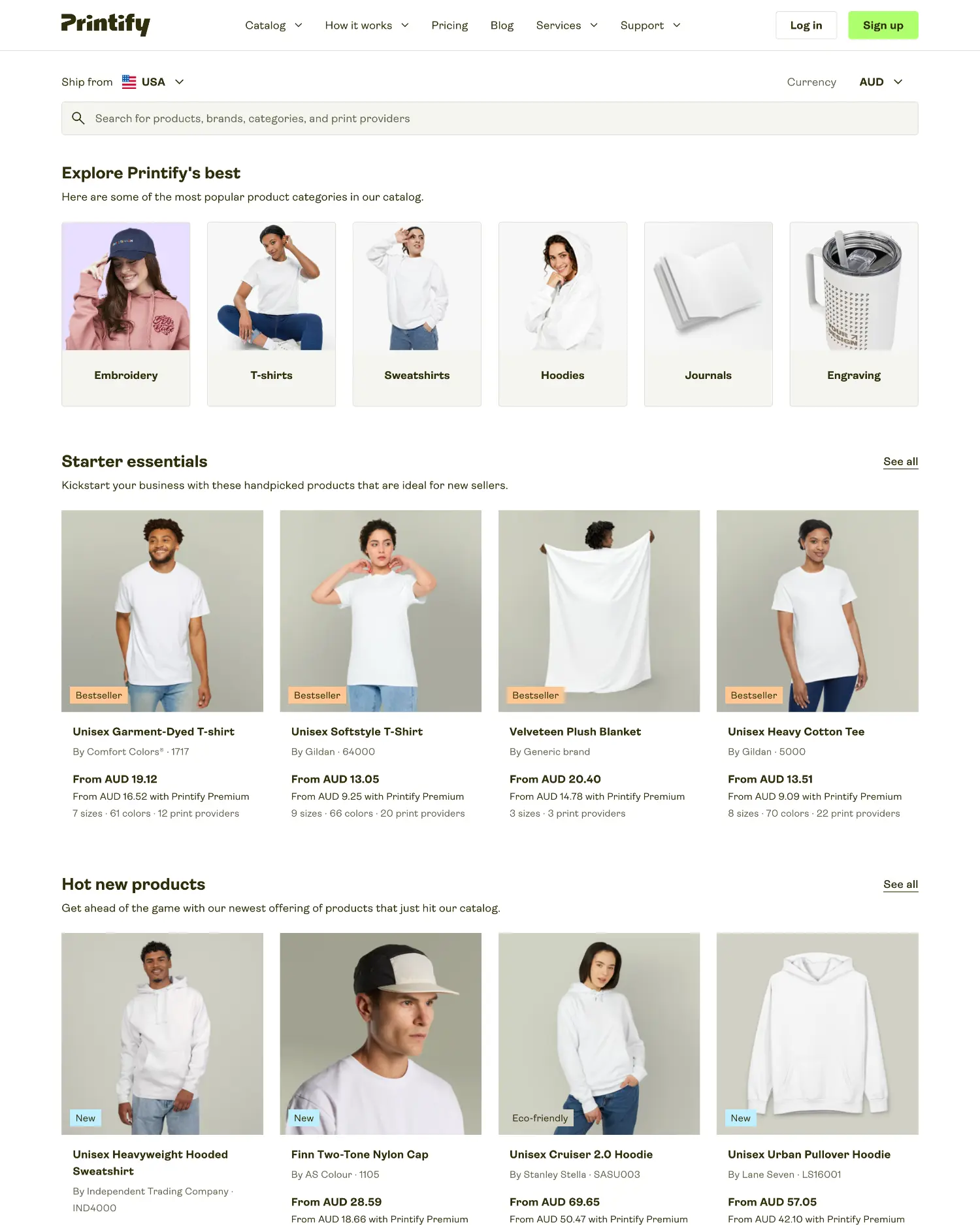 You are a US-based seller who strictly wants to sell to US-based customers. If you don't mind manually managing order routing and are willing to navigate regional price fluctuations, Printify’s massive open marketplace offers a vast catalogue of unique items.
