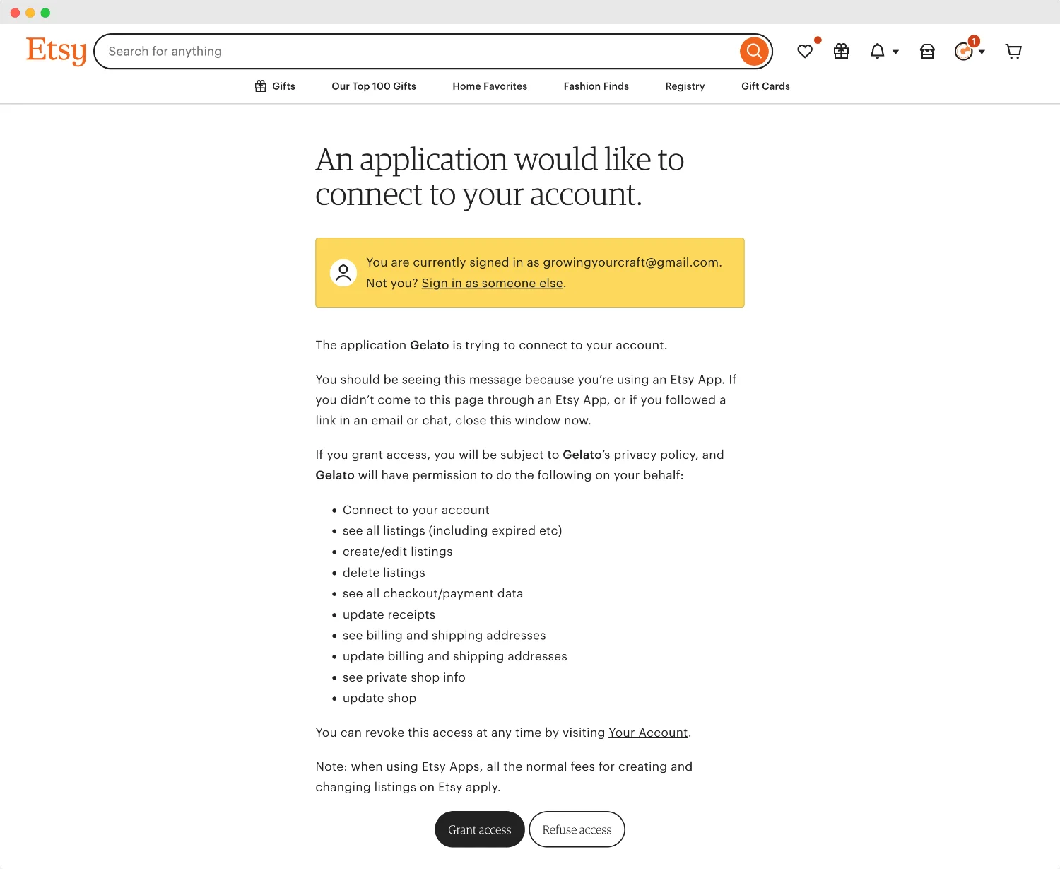 02 - Choose a POD Platform. This is where you will choose a company to handle your printing. I recommend choosing a POD partner that integrates directly with Etsy as this will make your life a lot easily. The big POD partners that do that include Gelato, Printful, and Printify. You'll create an account on their platform and connect it to your shop. When connecting to Etsy, it will look something like this: