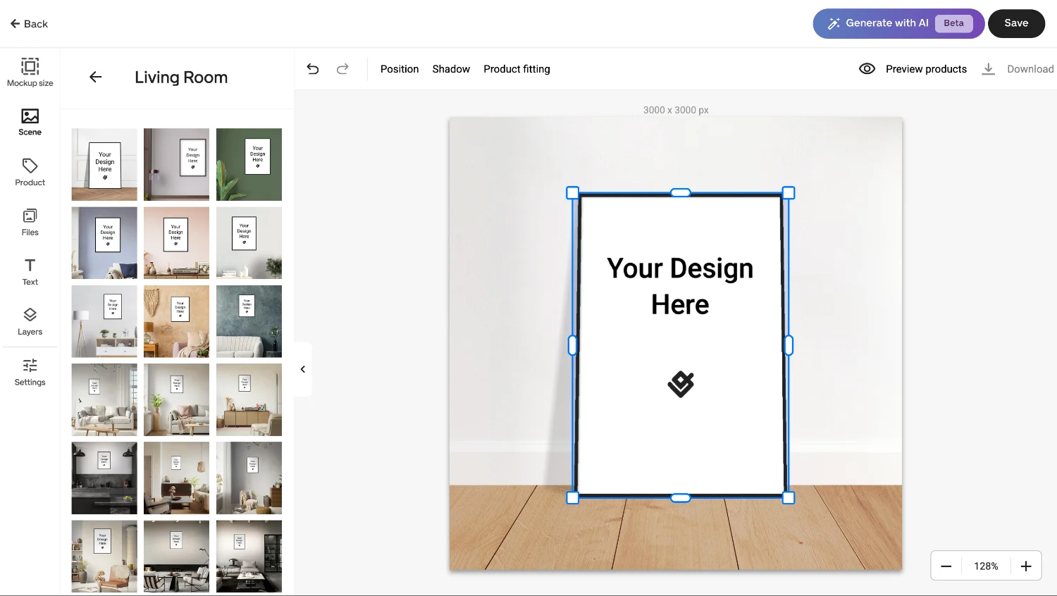 03 - Upload Your Design & Create a Product. Once connected, you can upload your artwork digital file to the POD platform's software and place it on a product, like a poster. You'll adjust the sizing and placement until it's perfect. Many of them also can generate professional mockup product photos for you to use for your Etsy listings.