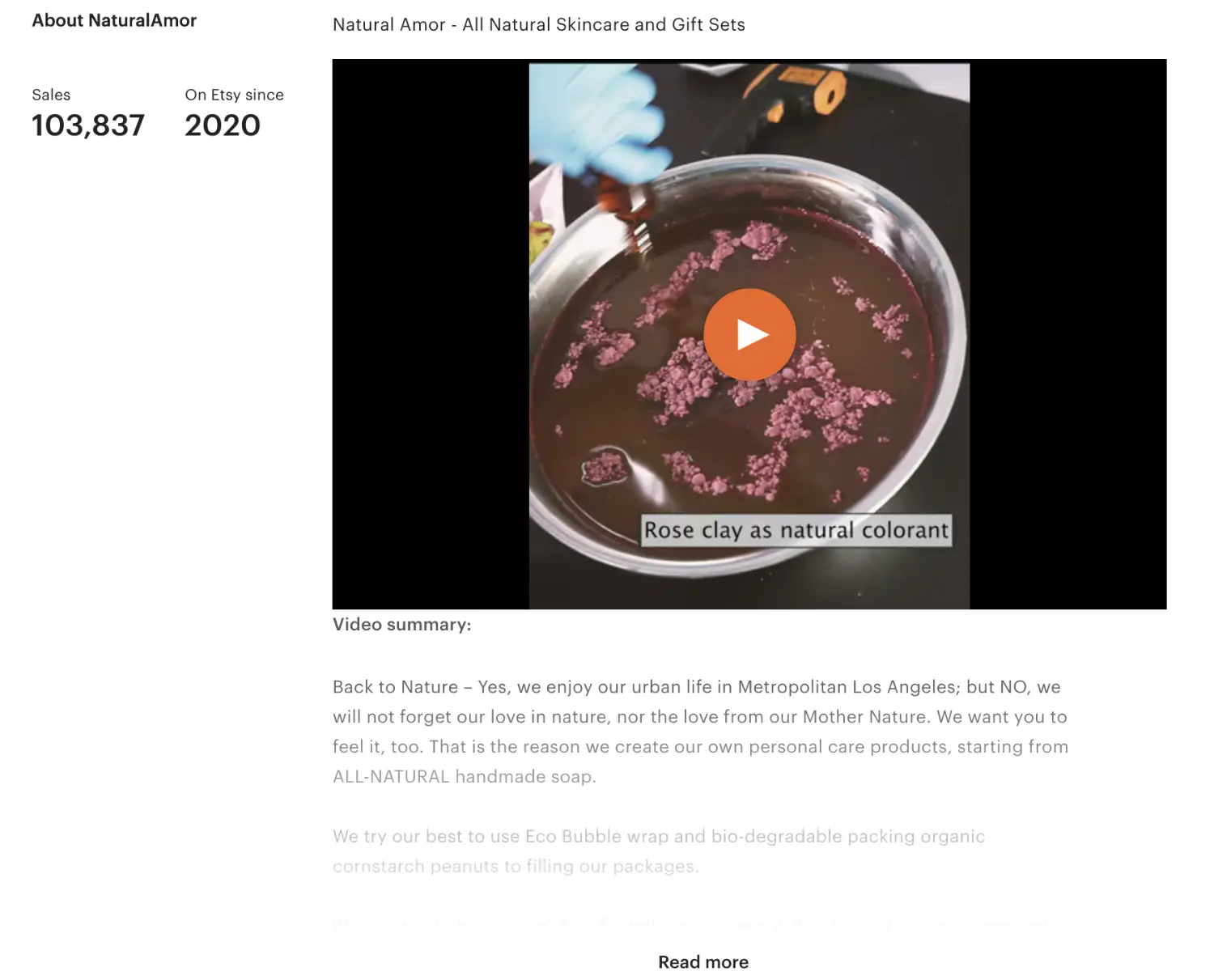 The Etsy algorithm favours listings that keep users on the app longer. Film a clip that answers showcase your product. Hold the item in your hand to show scale. Move it under a light to show the texture or sparkle. If the item is wearable, show it on a real person moving around. You don't need music or voiceovers (in fact, most buyers watch on mute) so focus entirely on the visual details that a static photo can't capture.
